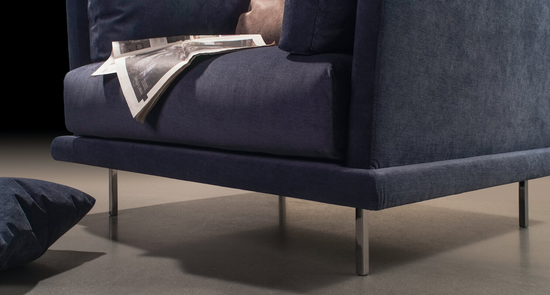 Утонченный каркас придал ей элегантный внешний вид, а воздушные сиденья и спиновые подушки помогли передать идею комфорта.