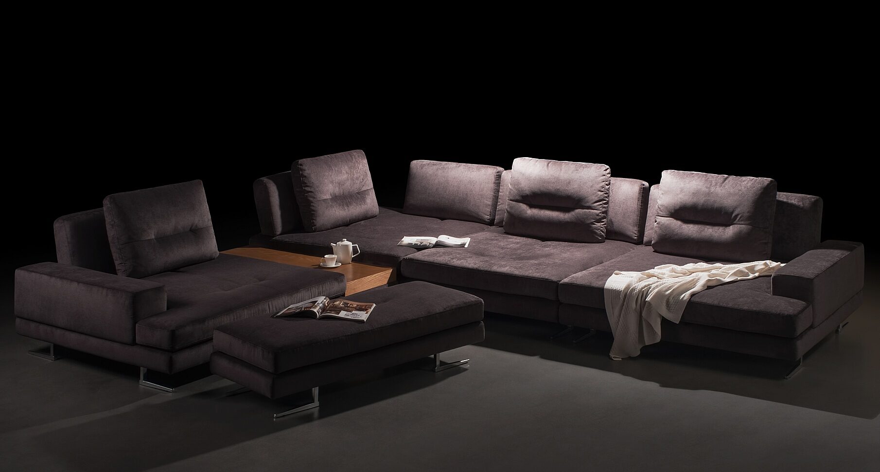 Удобная модульная система, предусмотренная позволяет подобрать необходимую конфигурацию дивана, которая идеально впишется в ваш интерьер. Ermes продуман до малейших деталей — функциональность, стильные лаконичные формы, оригинальные ножки из металла, а также комплектация журнальным столиком.