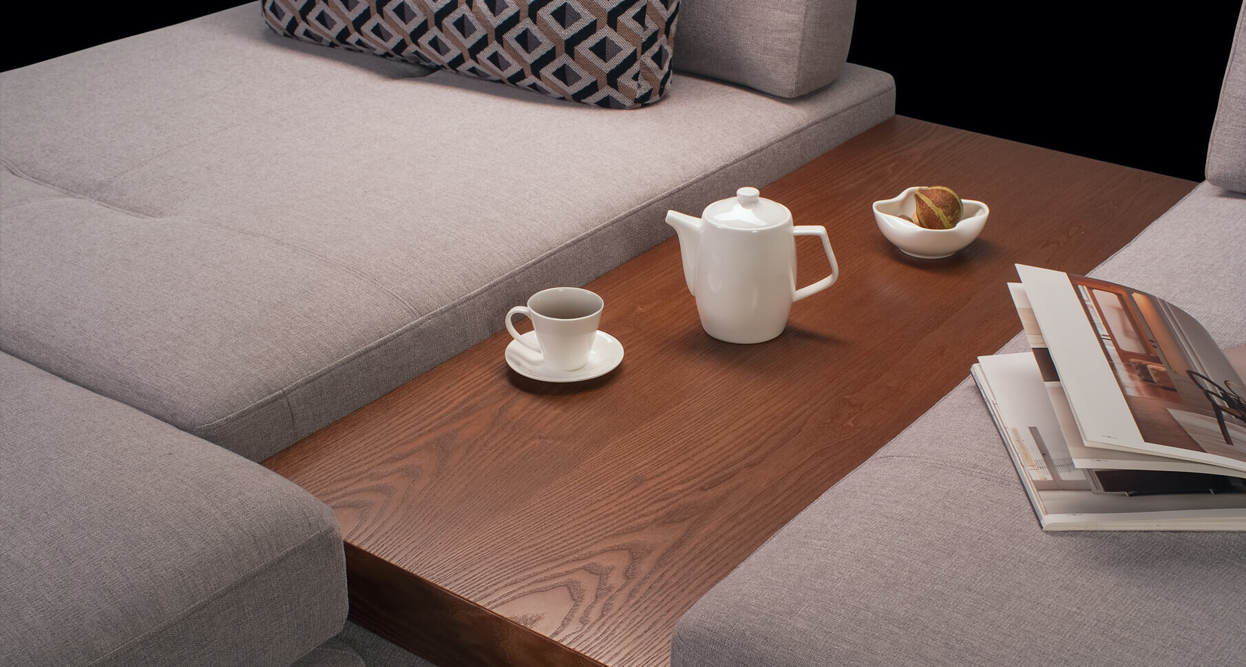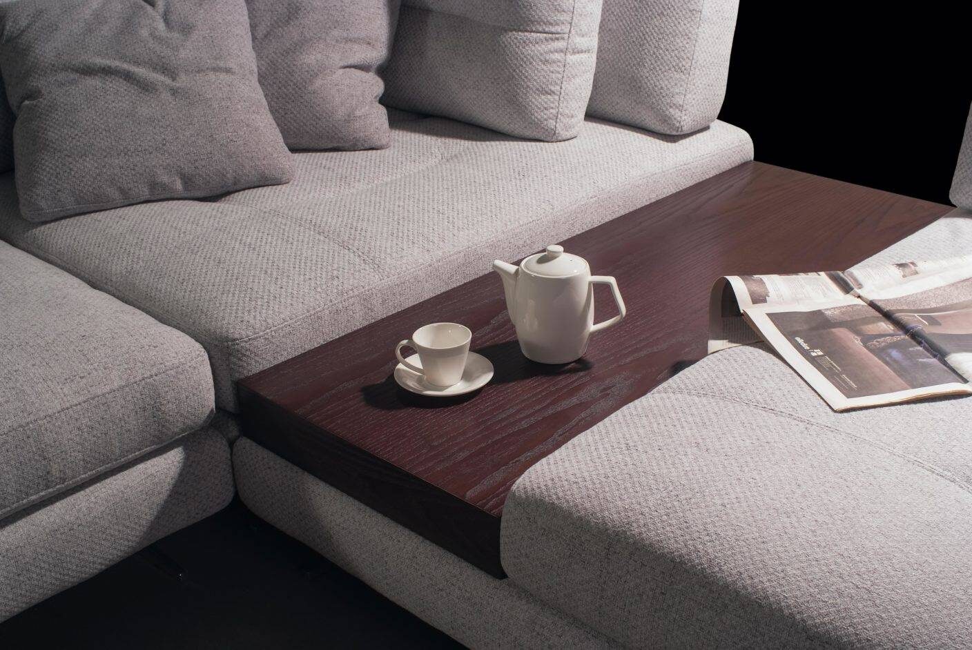 Ermes продуман до малейших деталей — функциональность, стильные лаконичные формы, оригинальные ножки из металла, а также комплектация журнальным столиком.