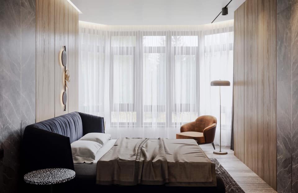 Ее главное достоинство — особо уютная зона изголовья. Это не просто яркое дизайнерское решение. Она создают ощущение особого уединения, интима.