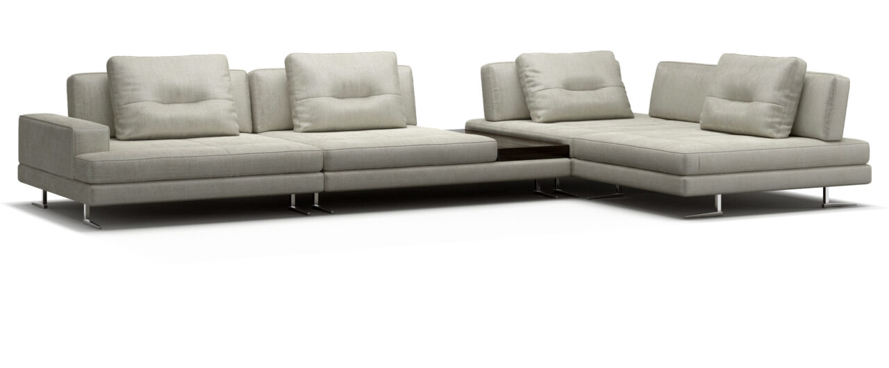 Диван имеет свободную конструкцию и состоит из модулей, не закреплённых между собой. Это позволяет менять его форму и играть им будто конструктором. В любой момент вы сможете обновить обстановку превратив диван в кресла, или кушетку, сможете добавить новые модули или же убрать несколько.