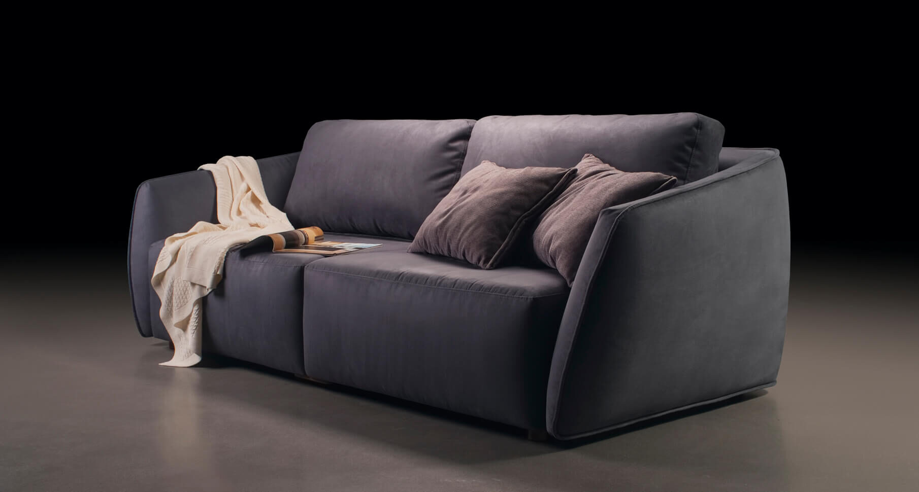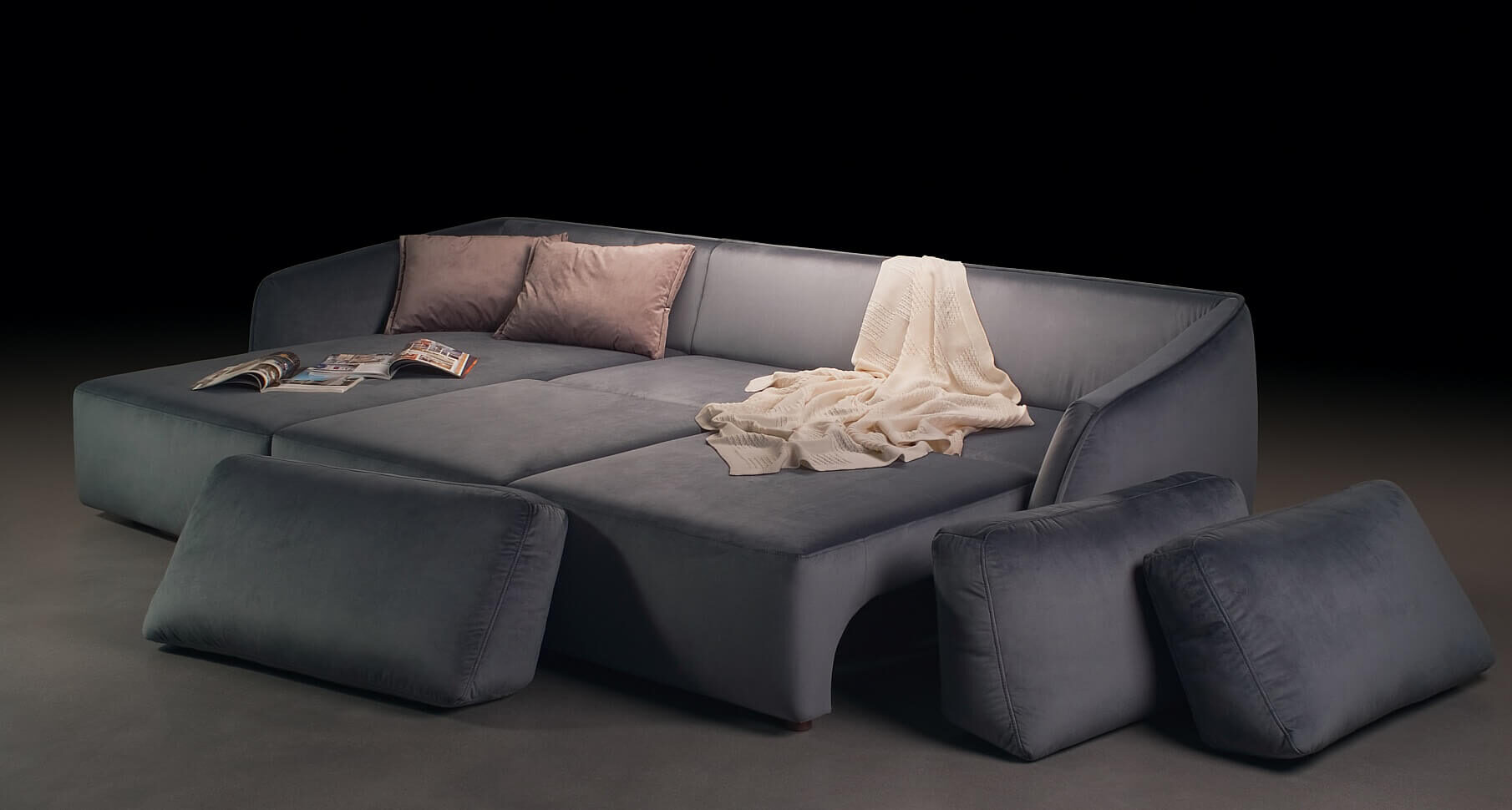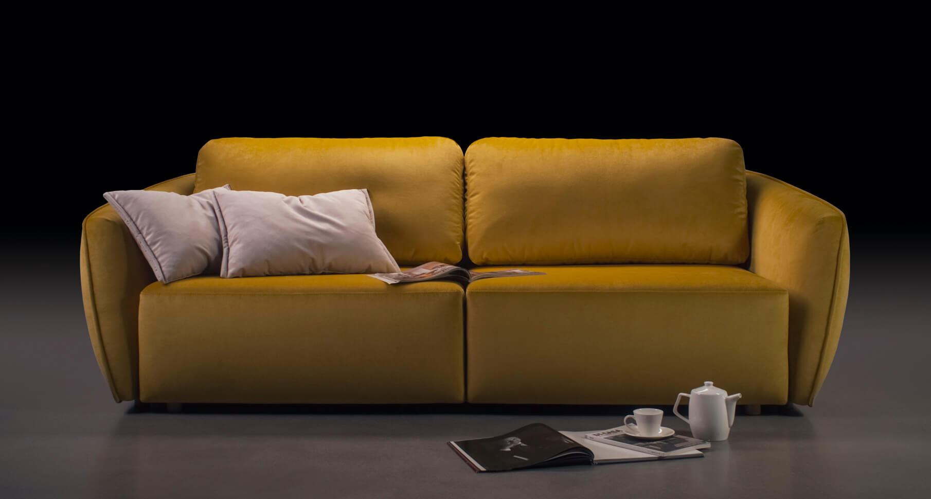 Frumoasa geometrie a liniilor creează o formă rotundă ușor convexă. Prin urmare, este ca un indiciu al unui balon, cu o formă sferică. Aici forma a devenit personajul principal, ca obiectele din picturile lui Picasso. Are un joc ușor, o provocare, o idee. Am încercat să o facem cât mai practică, așa că am inclus mecanismul de extindere Puma. Datorită lui, canapeaua MOON va deveni un spaţiu confortabil de dormit.