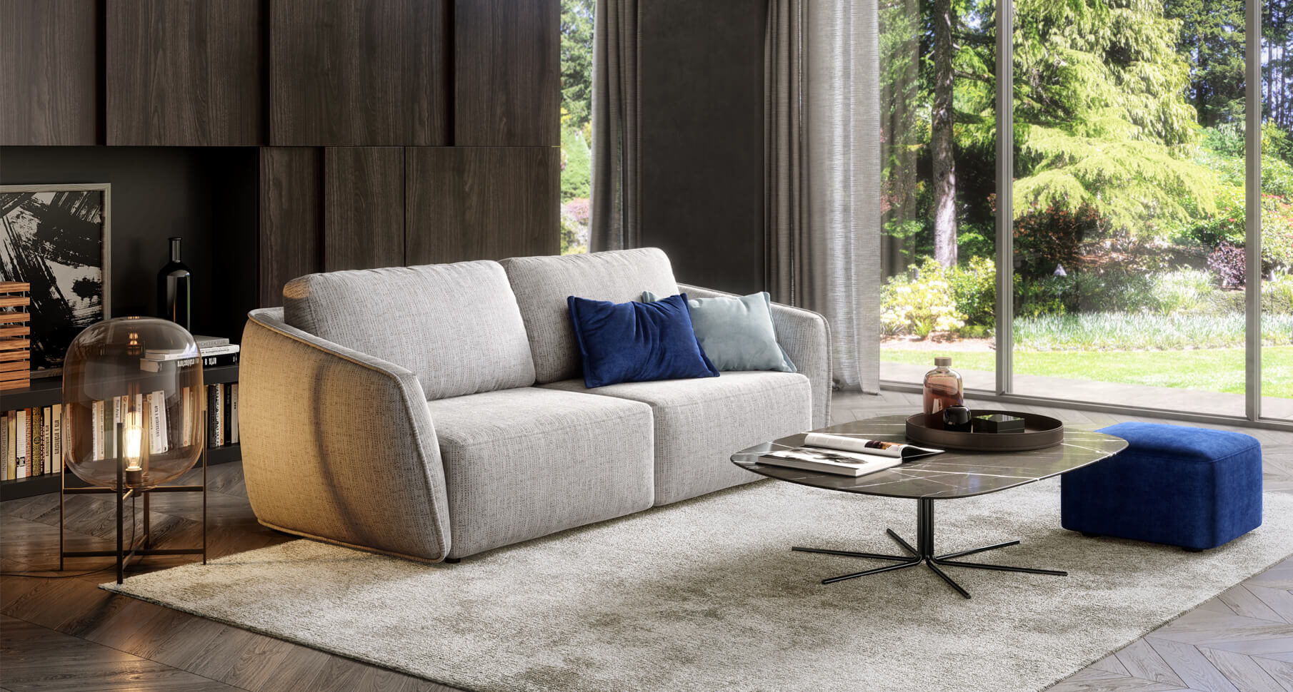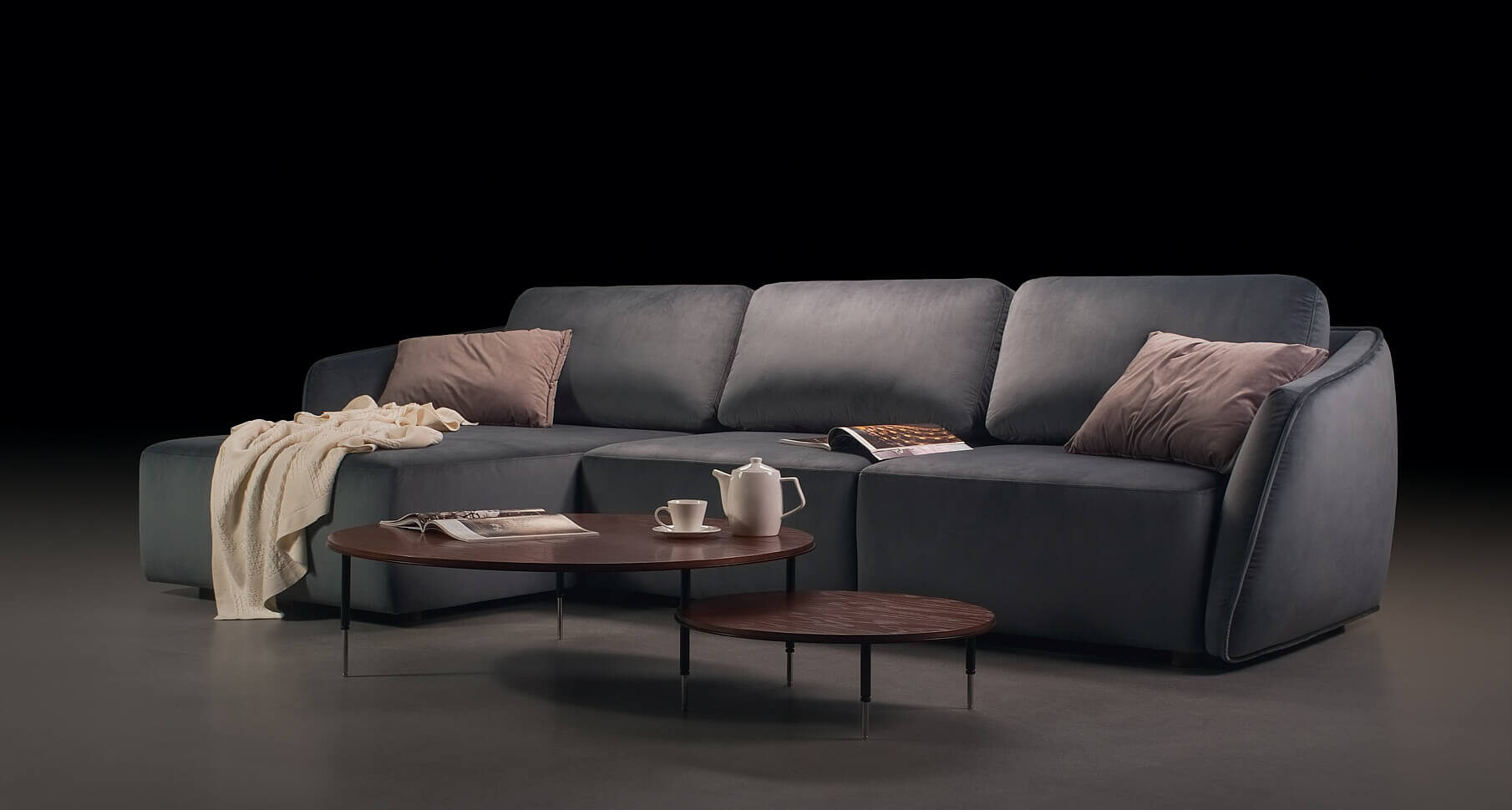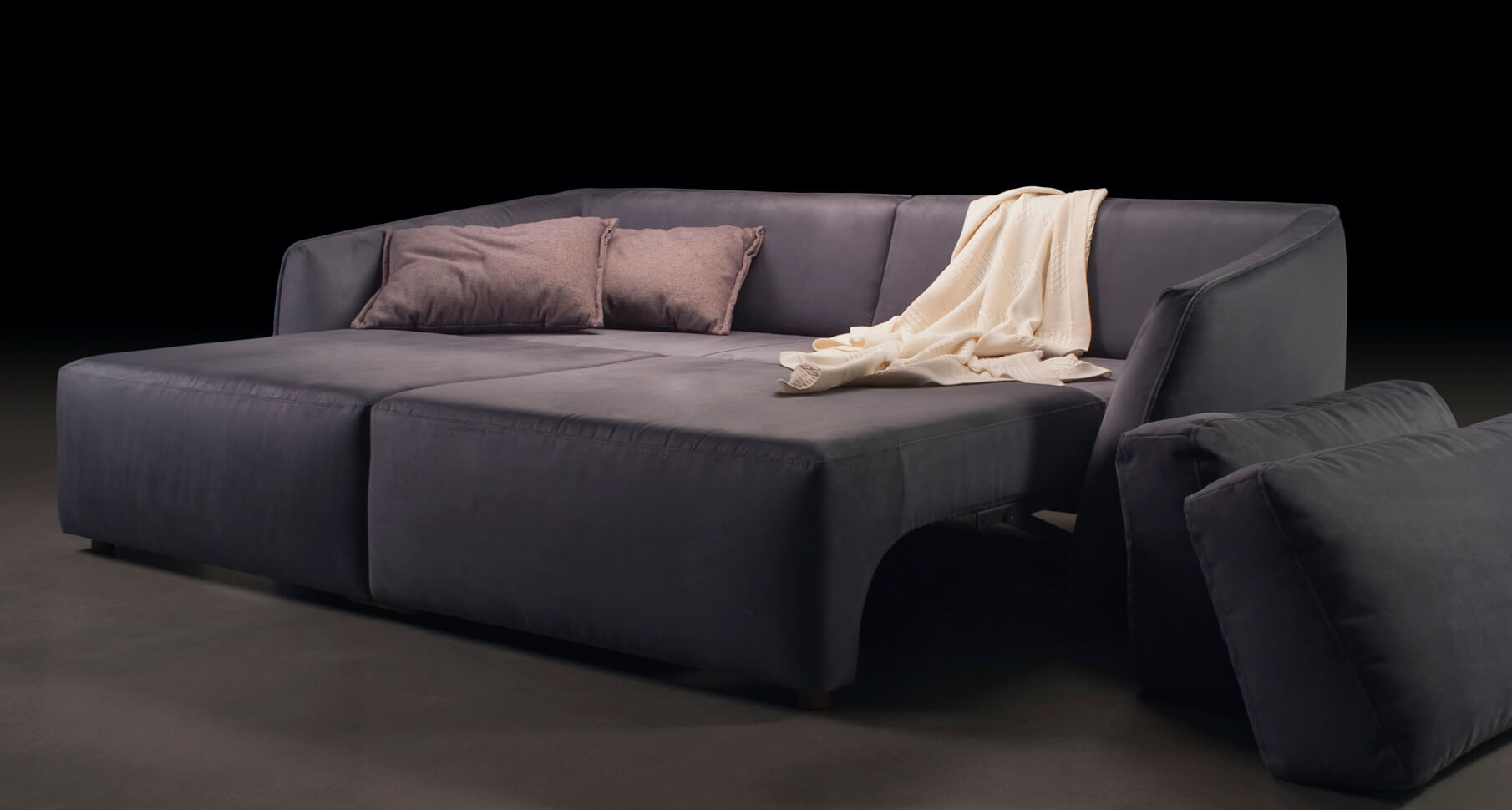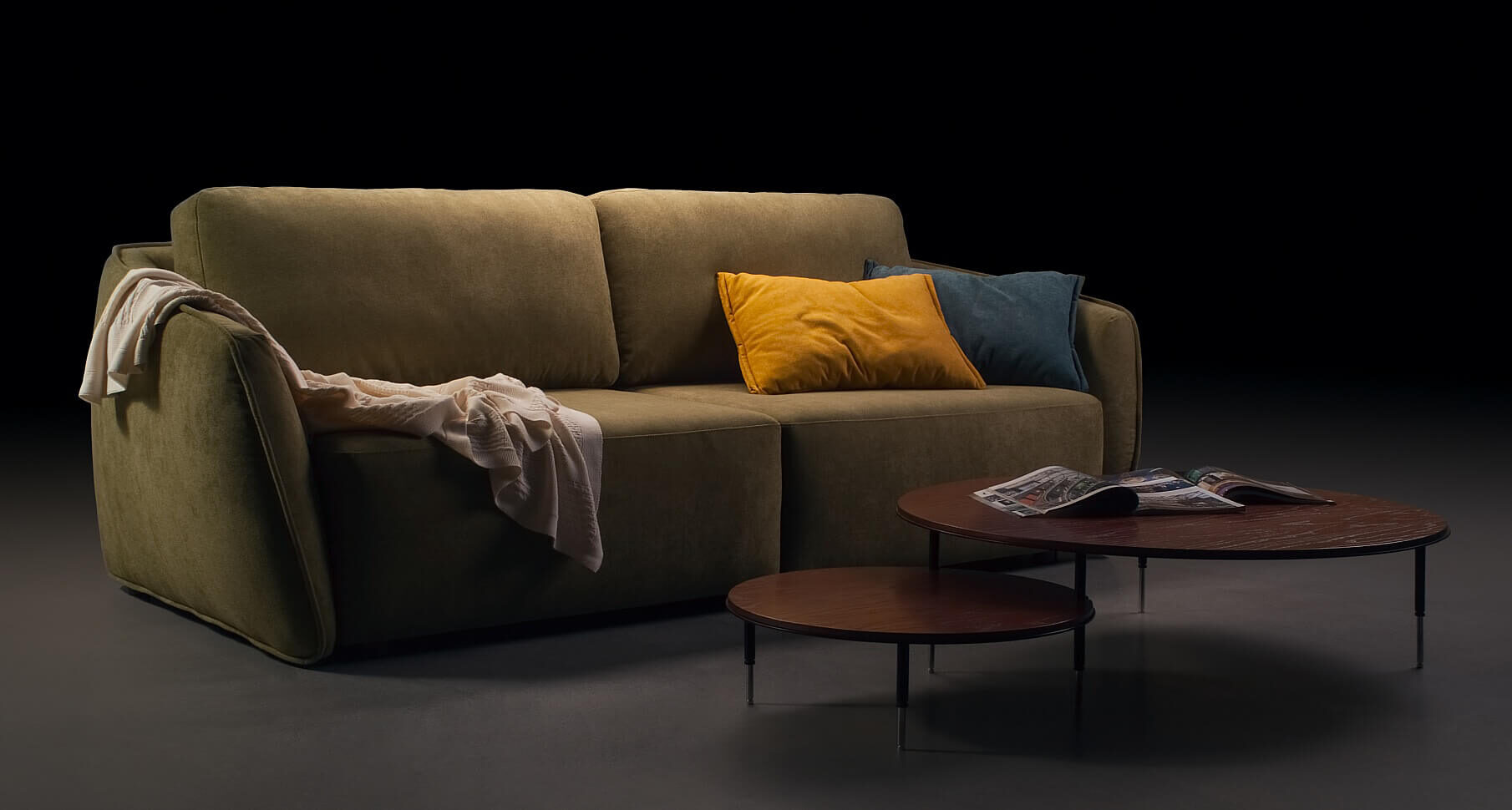 Frumoasa geometrie a liniilor creează o formă rotundă ușor convexă. Prin urmare, este ca un indiciu al unui balon, cu o formă sferică. Aici forma a devenit personajul principal, ca obiectele din picturile lui Picasso. Are un joc ușor, o provocare, o idee. Am încercat să o facem cât mai practică, așa că am inclus mecanismul de extindere Puma. Datorită lui, canapeaua MOON va deveni un spaţiu confortabil de dormit.